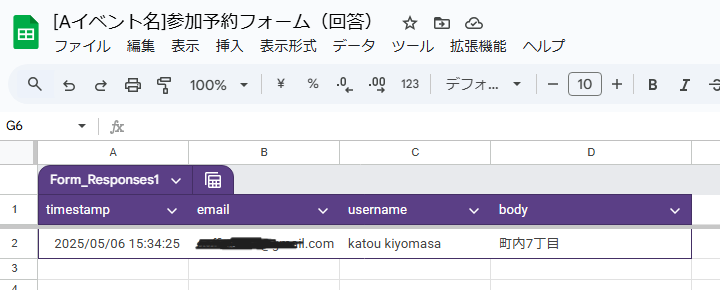 Googleフォームで打ち込んだデータを